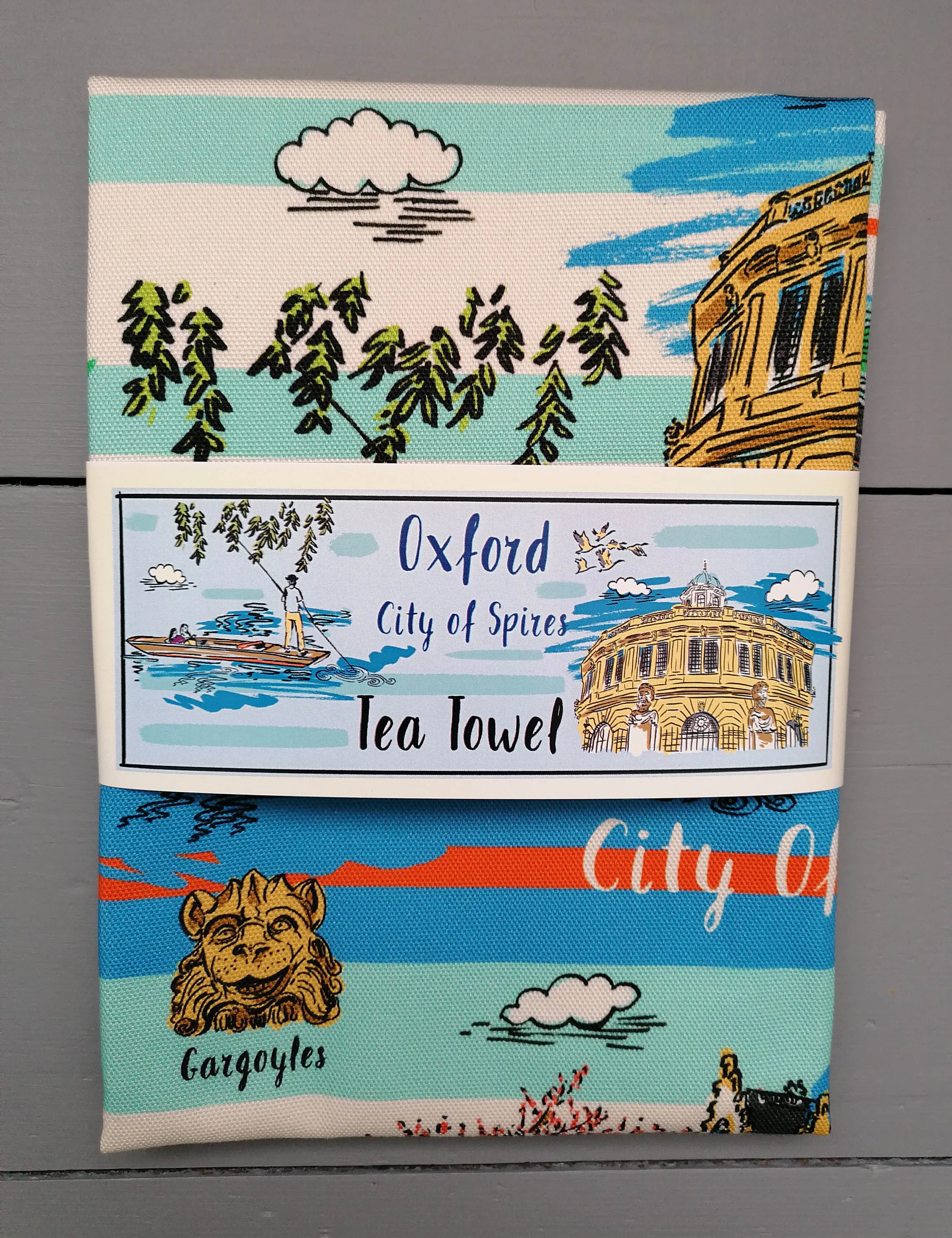I offer a range of illustrated printed products available in gift shops across Oxford. From colourful postcards and greeting cards to melamine coasters, magnets, and screen-printed bone china mugs, as well as digitally printed tea towels, tote bags, and aprons, each piece captures the spirit of the city through vibrant, playful illustrations.